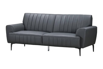 Canapé droit fixe en cuir reconstitué -Bosley- - 201 x 89 x 85 cm - 3 places - Gris