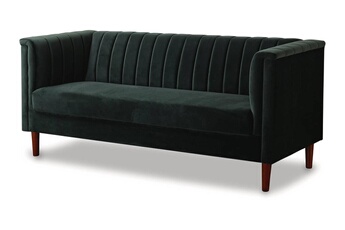 canapé fixe en velours ellison - 196 x 76 x 82 cm - 3 places - vert foncé