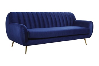Canapé fixe velours -Evans- - 195 x 84 x 82 cm - 3 places - Bleu foncé