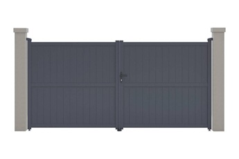 Portail aluminium -Maurice- - Dimensions : 349.5 x 155.9 cm - Gris - Structure : aluminium - 2 portes avec serrure et poignée - 2 colonnes - Ancrages intérieurs et extérieurs - Anti-UV - Anti-rouille