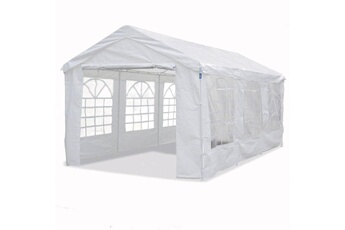 Tente de réception de jardin "Célia" - Dimensions : 590 x 290 x 270/200 cm - Blanc - Structure : acier - Toile : polyéthylène - Imperméable Description du produit Descriptif : Tente de réception Celia - 17.11 m². Structure/Matière : Structure : acier - Toile : polyéthylène. Couleur : Blanc. Panneaux : Panneaux avant et arrière : 100 g/m²Panneaux avant et arrière : 100 g/m² Toile : 140 g/m². Matière : Acier / Polyéthylène. Caractéristiques techniques Dimensions extérieures : 590 x 290 x 270/200 cm Panneaux avant et arrière : 590 x 290 cm Panneaux latéraux : 290 x 290 cm. Toiture : En pente. Pieds : 190 cm. Hauteur min/max : 270/200 cm. Surface : 17.11 m². Vitres : 6 fenêtres incluses. Type de couverture : Couverture amovible. Conseil Pratique : Système d'ancrage : clous et vis en acier, corde (polypropylène) Résistant aux intempéries. Colisage : 2 colis : - 1,95 x 0,23 x 0,16 m, 24,9 kg - 0,65 x 0,6 x 0,27 m, 18,2 kg. Poids : 39.1 kg. Forme : Rectangulaire. Dimensions : 3 x 6 m.