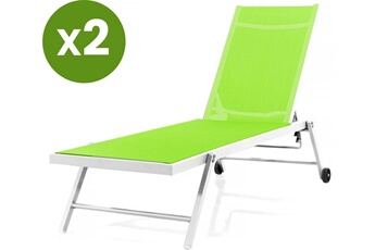 lot de 2 bains de soleil textilène matelassé et aluminium jolia - phoenix - vert / blanc