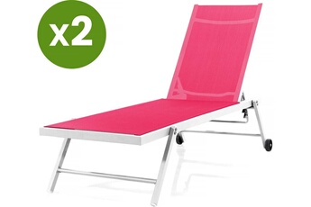 Transat? HABITAT ET JARDIN Lot de 2 bain de soleil textilène matelassé et aluminium "jolia" - phoenix - fuschia / blanc
