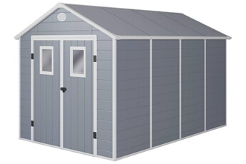 abri de jardin résine texas - 8.82 m² - 368 x 242 x 239 cm - gris