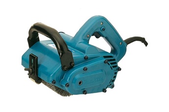 Décapeur à rouleau 860W 9741. - Décapeur polyvalent pour satiner, polir, poncer, brosser, structurer, ébavurer, décaper et céruser. - Brosses disponibles pour bois et métaux. - Possibilité de raccordement à l'aspirateur. - Prise en main et équilibre étudiés pour un maximum d'efficacité et de confort. - Profondeur de ponçage réglable rapidement. Caractéristiques : ○ Puissance nominale : 850 W ○ Vitesse à vide: max. : 3 500 tr/min ○ Dimensions de la brosse abrasive : 100 x 120 (larg.) mm ○ Pression sonore : 88 dB(A) ○ Puissance sonore : 99 dB(A) ○ Dimensions : L 310 x l 185 x h 182 mm ○ Poids net : 4,2 kg ○ Longueur cordon d'alimentation : 4 m Livré en boîte carton avec : - 1 Adaptateur - 1 Brosse en nylon grain 80 - 2 Clé à six pans Garantie 3 ans. (NB : Bénéficiez d'une garantie de 3 ans pour les machines et 2 ans pour les batteries et chargeurs lithium-ion en enregistrant votre outil électroportatif, les batteries et chargeur sur le site Makita dans les 4 semaines après la date