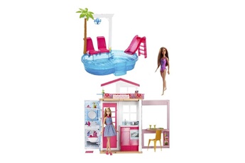 Figurines personnages Mattel Barbie maison avec piscine et 3 poup?es