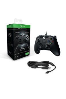 Manette filaire PDP pour Xbox One. Poignées antidérapantes avec boutons arrières et gâchettes ergonomiques. Entrée audio 3,5 mm et contrôle des volumes du jeu et du chat directement sur la manette. Poignées vibrantes et gâchettes à impulsion. Coloris : noir. Compatible PC. Inclus : câble détachable de 2m40