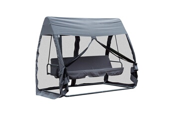 Balancelle de jardin Outsunny Balancelle de jardin convertible 3 places grand confort : matelas assise dossier, moustiquaire intégrale zippée avec toit, pochette rangement métal époxy polyester gris