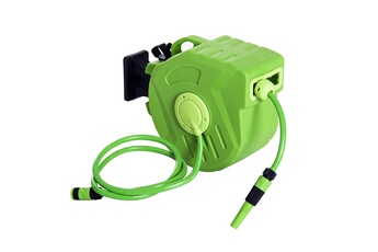 Description : Ce dévidoir mural pivotant à 180° avec système d'enroulage automatique et tuyau 20 + 2 m (lance d'arrosage incluse) vous offrira un confort optimal pour l'arrosage de votre jardin. Simplement fixé à votre mur grâce au support et visserie fournis, vous n'aurez plus à vous baisser et à vous salir les mains !Caractéristiques : - Dévidoir mural pivotant à 180° pour une maniabilité et arrosage optimal