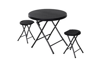 Salon de jardin Outsunny Ensemble de jardin pliable 2 pers. 3 pièces ensemble bistro style contemporain 2 tabourets + table ronde ø 80 cm métal hdpe imitation rotin noir