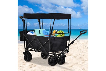 Chariot pliant avec toit, poignée, panier - chariot de plage - chariot de transport pliable tout-terrain métal oxford noir