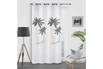 Rideau Palmier 135x250 - Terre de Nuit : - Style tendance et contemporain - Imprimé : motifs palmier - 100% polyester - Vient parfaire la décoration - S'adapte facilement à tous les intérieurs - 8 oeillets en métal - Dimensions : largeur 135 cm, longueur 250 cm