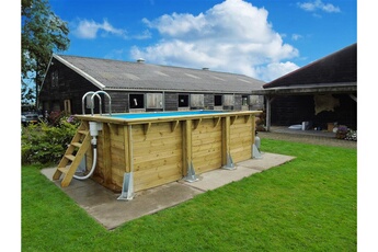 Piscine en bois Linéa UrbanPool de la marque Ubbink. Dimensions extérieures : 250 x 450 cm. Dimensions intérieures : 200 x 400 cm. Hauteur : 140 cm. Volume d'eau : 10,0 m³. Surface flottante : 8,0 m². En pin autoclave de 455 mm d'épaisseur.Avec système de nage à contre-courant, groupe de filtration 6m³/h, pompe à chaleur, coffre électronique, spot LED, échelle intérieure inox, échelle extérieure amovible bois, feutre de fond 200g/m², feutre de parois 170 g/m², sortie en PVC et 15 m de tuyau Ø 50 mm, finition aluminium anodisée des margelles d'angles et droite.Possibilité de l'installer de 3 façons : hors-sol, semi-enterrée ou enterrée.Doit reposer sur dalle de béton de 3,5 x 7 m. Couleur du liner : Gris Débit de filtration : 6 m³/h Dimensions de la dalle béton : 7,00 x 3,50 m Dimensions extérieures (L x l ou Ø) : 2,50 x 4,50 m Dimensions extérieures (L x l x H) : 2,50 x 4,50 x 1,40 m Dimensions intérieures (L x l ou Ø) : 2,00 x 4,00 m Dimensions intérieures (L x l x H) : 2,00 x 4,00 x