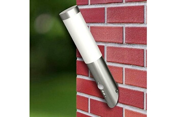 Cette applique murale garantie anti-rouille convient à tout type de paroi, cloison ou enclos. Sa fenêtre mate permet de diffuser une lumière douce, son design moderne de forme cylindrique s'adapte à tous les styles.Fonctionne avec ampoules normale ou basse consommation, de culot E27.La lumière se déclenche automatiquement grâce au détecteur de mouvement. La distance de détection est ajustable entre 4 et 8 métres ( réglable à l'aide d'une molette ). La durée d'illumination peut aussi etre modulable entre 8 secondes à 5 minutes (une seconde molette vous aidera a gérer la durée ). Caractéristiques: Quantité : 1 Matériau : acier inoxydable et PVC Détecteur de mouvement : oui Tension : 220-240V~ Max. puissance : 60 watt La lampe se met en marche si la luminosité extérieure est inférieure à 30 Lux Etanchéité : IP44 Douille : E27 Dimensions : 6 x 36 cm (L x h) Tension : 50 HZ - 230 V SKU: 40373