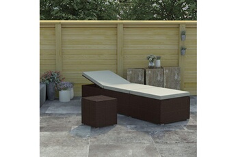 Transat? Vidaxl Chaise longue avec coussin et table à thé résine tressée marron