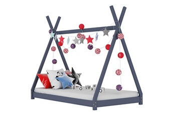 Créez le refuge ultime dans la chambre de vos enfants avec notre cadre de lit fantastique ! Le lit présente un cadre croisé innovant inspiré des tentes de style tipi cool où vous pouvez accrocher des rideaux de lit pour créer de l'intimité pour votre enfant. Il peut également être utilisé comme coin lecture ou maison de jeu pour votre enfant. Fabriqué en bois de pin massif, ce cadre de lit est extrêmement robuste et durable. Les lattes résistantes offrent le soutien nécessaire et sont très confortables. Ce cadre de lit convient à un matelas de 90 x 200 cm. Veuillez noter que la livraison inclut un cadre de lit seulement ; un matelas et les rideaux ne sont pas inclus. Le lit est facile à assembler. Vous pouvez chercher le matelas correspondant dans notre boutique. Caractéristiques: Couleur : gris Matériaux : lattes en contreplaqué + cadre en pin massif Dimensions totales : 208 x 98 x 154 cm (L x l x H) Dimensions du matelas correspondant : 90 x 200 cm (I x L) (matelas non inclus)