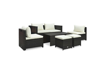 Salon de jardin Vidaxl Salon de jardin 6 pcs avec coussins résine tressée marron