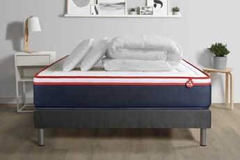 Pack prêt à dormir matelas 140x200cm VITAL FORM Ressorts ensachés + Mémoire de forme + sommier kit gris + 2oreillers+couette