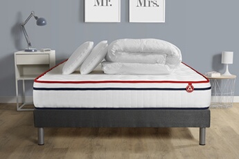 Ensemble matelas et sommier Vitalit Pack prêt à dormir vitalmemo back 140x190 mémoire de forme 5 zones maxi épaisseur + sommier kit gris + 2oreillers + couette539,00 €