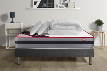 Ensemble matelas et sommier Vitalit Pack prêt à dormir vitalpower recover 160x200 mousse à mémoire de forme 5 zones + sommier kit gris + 2 oreillers + couette