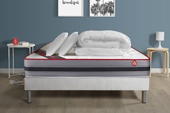 Ensemble matelas et sommier Vitalit Pack prêt à dormir vitalspring recover 180x200 ressorts ensachés, visco 7 zones + sommier kit blanc + 2oreillers + couette
