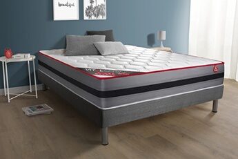 Ensemble matelas et sommier Vitalit Ensemble vitalspring recover 180x200 ressorts ensachés, visco 7 zones maxi épaisseur + sommier kit gris